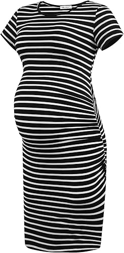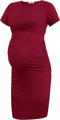 Comfortable Short Sleeve Maternity Dress with Ruched Design for Pregnancy