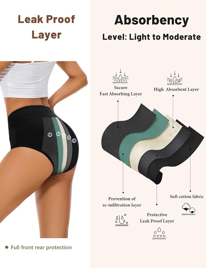 - Premium Materials: 95% cotton, 5% spandex construction with breathable PUL leak-proof layer and specialized absorbent crotch area for maximum comfort and protection.