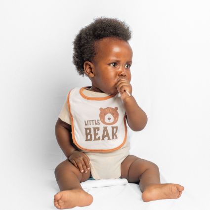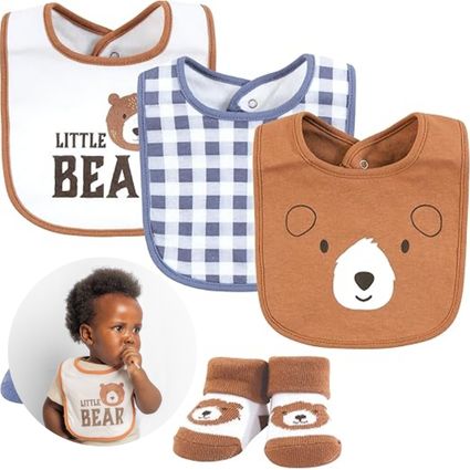Coordinated Bib and Sock Combination – Complete matching set includes coordinating bibs and socks designed to create cohesive, stylish outfits. Perfect for building coordinated baby wardrobes with complementary accessories that work beautifully together.